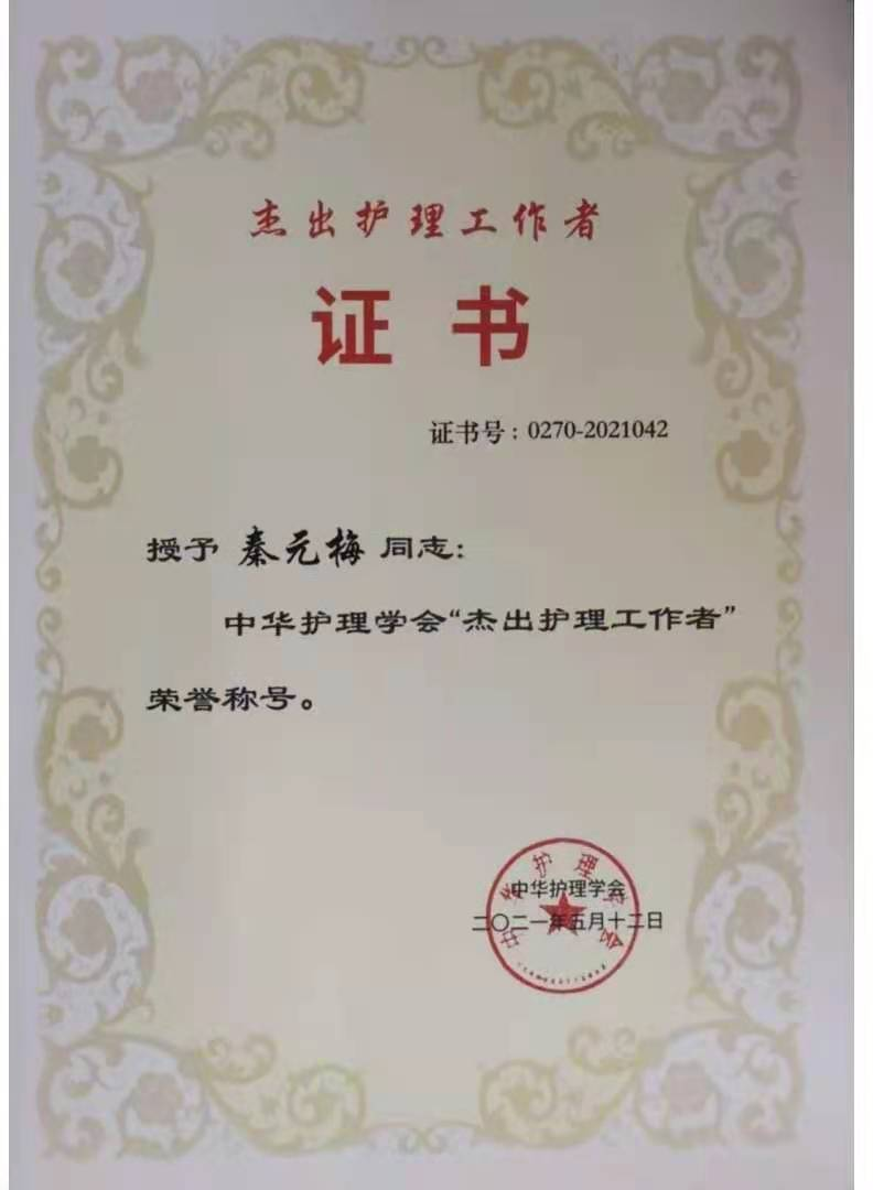 本网讯(文图/杨雪)为激励广大护理科技工作者立足本职、锐意进取,进一步弘扬南丁格尔精神,2021年5月11日上午,中华护理学会在北京国际会议中心第一会议厅举行2021年国际护士节庆祝大会。我校护理学院副院长秦元梅教授荣获“杰出护理工作者”称号,是河南省唯一获得此项殊荣的中医护理工作者。