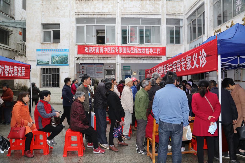 听说省城专家前来义诊,一大早,前来就诊的患者就挤满了新县中医院的院子。在该院任挂职副院长的二附院李中心同志,早已组织人员做好了各项准备,孟毅、孟泳、郭会卿、孟庆良、聂恒、秦合伟几位专家,都分诊到几十位病人。一位病人一个月内多次昏迷,经验丰富的孟毅教授初步诊断为癫痫,并给出了进一步的诊疗方案。一些颈椎病、腰腿疼患者经郭会卿、孟庆良两位专家现场手法治疗,病情立刻得到缓解。中医药的神奇疗效受到老区群众交口称赞。一位女士说:“我浑身是病,今天得到了多位专家的诊治,非常感谢,党的健康扶贫、结对帮扶政策就是好。”由于工作高度紧张,专家们顾不上喝口水,孟毅教授因过于专注而长时间保持一个姿势,起身时脚麻得无法走路。截止当天中午十二点,义诊超过200人次,其他登记过的患者由聂恒、秦合伟两位博士继续为病人看诊。