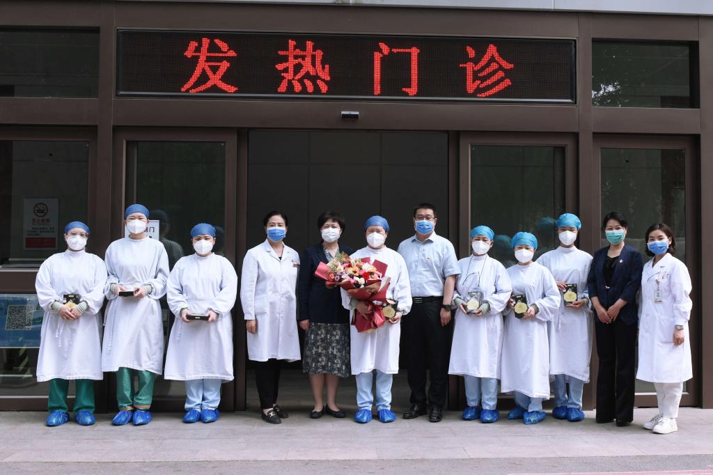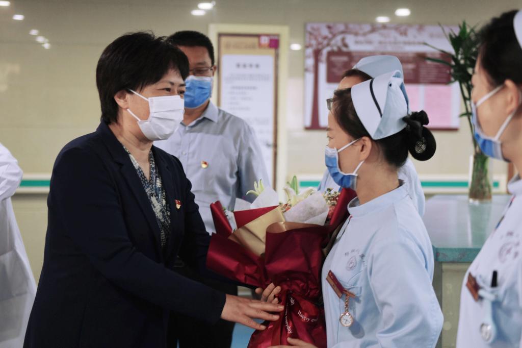 李小芳一行先后走进医院急诊科、感染科、消化内科,亲切慰问坚守在岗位上的一线护理人员,并对坚守在疫情防控一线发热门诊的护理人员表示真诚的感谢。