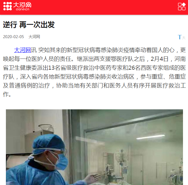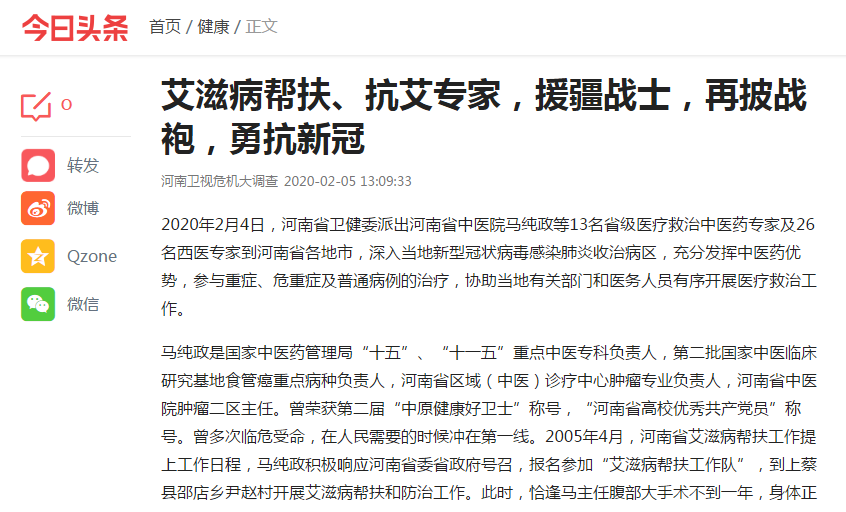 编者按:2020年2月5日,大河网、今日头条对我校二附院肿瘤二区主任马纯政奔赴抗“疫情”一线进行报道。现将大河网全文刊发如下: