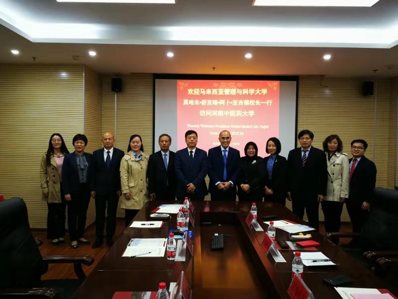 舒克瑞先生对马来西亚管理与科学大学仲景学院的运行情况做了简要介绍,并对我校在国际化办学方面所取得的成就表示赞赏。他表示,愿意助力我校国际化办学,拓宽双方教育国际合作领域,期待我校进一步在马来西亚本土植物药的研发等方面进行合作。