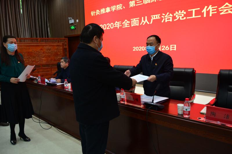 会上,院领导班子成员向周运峰递交了《2020年全面从严治党保证书》。院党委副书记袁晓宇宣读2019年全面从严治党先进集体名单并进行了表彰。