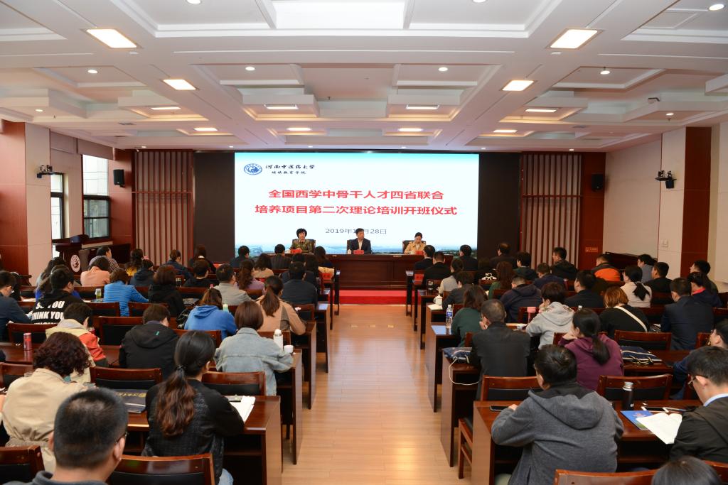 本网讯(文图/付玉)2019年10月28日,由国家中医药管理局主办,浙江、山东、江苏、河南四省中医药管理局协办,南京中医药大学、浙江中医药大学、山东中医药大学、亚盈app(中国)官方网站联合承办的全国西学中骨干人才联合培养项目第二次理论培训开班仪式在我校龙子湖校区图书馆第二报告厅举行。校长许二平致欢迎词,河南省卫生健康委中医处副处长张莉参加仪式,副校长田力主持开班仪式。四省四校继续教育学院院长、授课专家代表及苏、浙、鲁、豫四省80名学员参会。