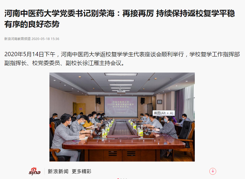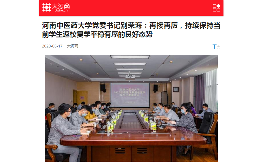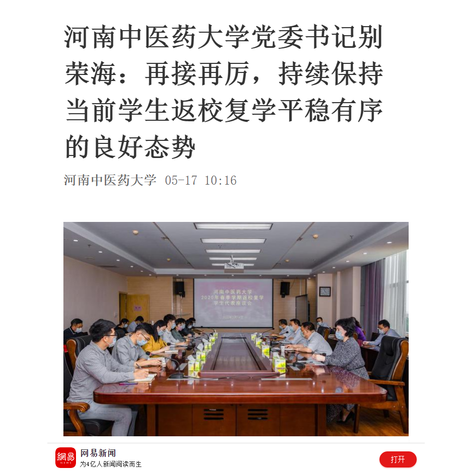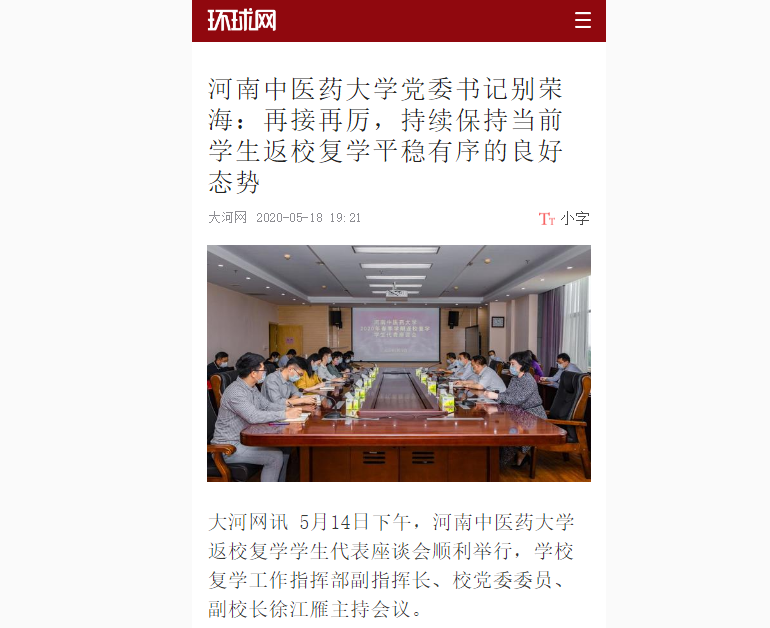 2020年5月17日-18日,环球网、大河网、网易新闻、新浪新闻对我校平稳有序的学生返校复学工作成效进行报道。