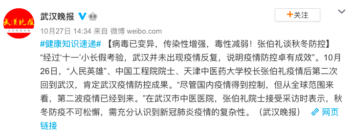 张伯礼最新研判:病毒传染性增强,毒性减弱
