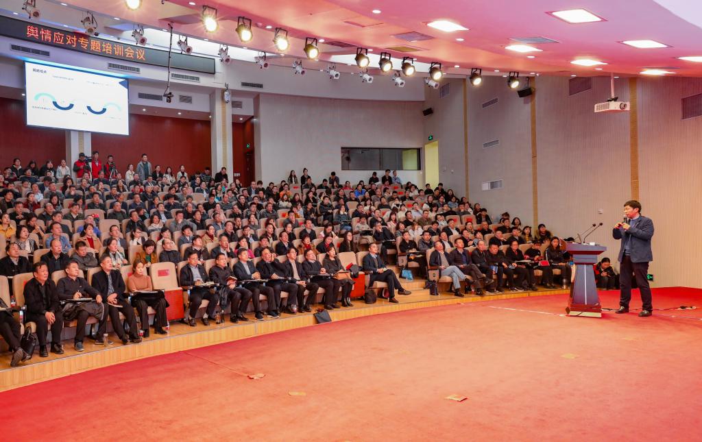 本网讯(文/苗苗 图/秦东仁)为提高学校在新媒体背景下舆情事件处置与应对工作的科学性、针对性和有效性,做到守土有责、守土负责、守土尽责,2019年12月10日下午,我校在图书馆第一报告厅召开党委中心组集中学习暨舆情应对专题培训会。培训会分两个阶段进行。