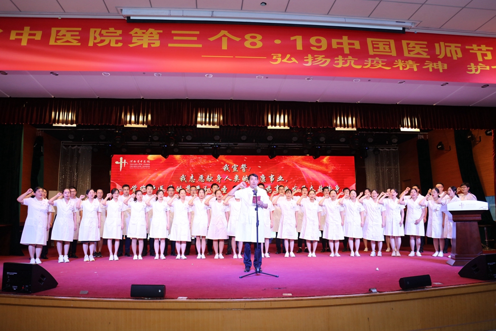 王海亮在致辞中强调,“中国医师节”是党和人民给予医务人员的特殊荣誉,我们要不断深入贯彻习近平总书记重要指示,积极响应党的号召,秉承“承古纳今,厚德为民”的院训,修医德、行仁术,积极总结新冠肺炎中西医协同救治经验,为中医药及早介入、规范救治、全程参与提供标准依据,持续提升中医药服务能力,切实增进人民健康福祉。