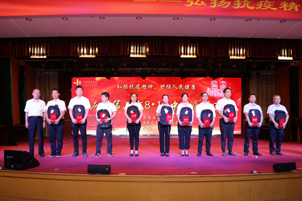 校党委委员、副校长李建生为5名省级医疗救治专家及26名院内疫情防控一线医师颁奖