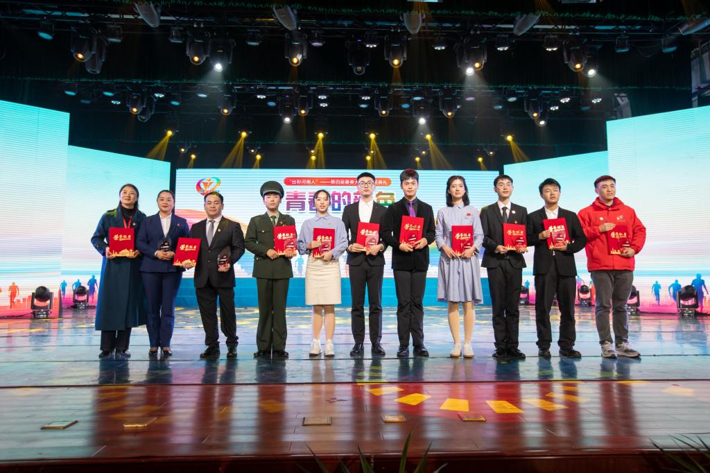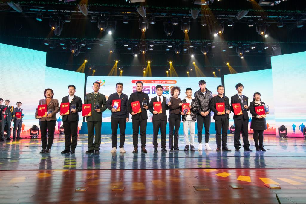 “出彩河南人”第四届最美大学生领奖现场(右三为秦中朋)