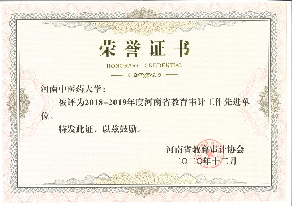 本网讯(文图/张熙原)日前,在河南省内部审计协会、河南省教育审计协会先后开展的2018-2019年度河南省内部审计工作和省教育系统内部审计工作先进集体和先进工作者评选活动中,我校分别荣获“河南省内部审计工作先进集体”“河南省教育审计工作先进单位”称号,许二平校长荣获“河南省支持教育审计工作先进工作者”荣誉称号,王倩、张文轩、高远、孙睿敏四位同志分别获得“河南省教育审计工作先进工作者”“河南省内部审计先进工作者”称号。