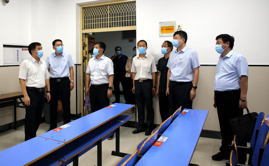 省教育厅副厅长、党组成员刁玉华(左一)一行检查指导授课教室