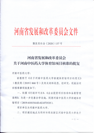 我校体育馆项目的建议书于2020年2月18日通过了由省发展改革委组织的专家组的评审。结合专家评审中提出的意见和建议,基建处会同项目建议书编制单位,以科学严谨的态度、求真务实的作风,克服了“新冠肺炎”疫情对工作的影响,对项目建议书进行了认真的优化完善,上报省发展改革委审批并正式获批。