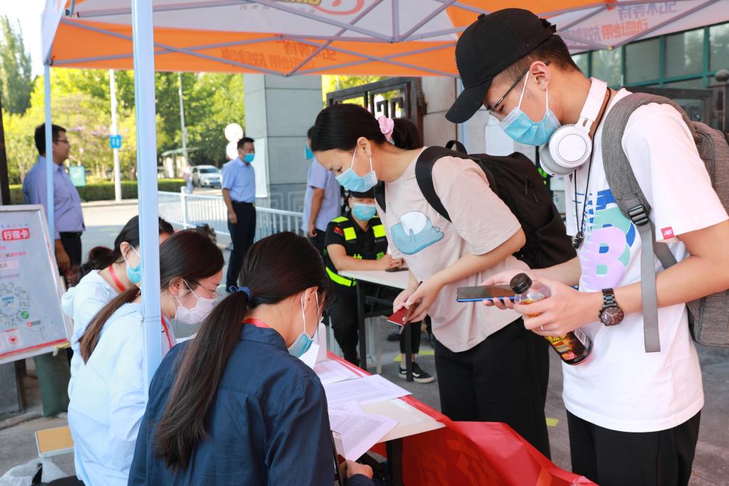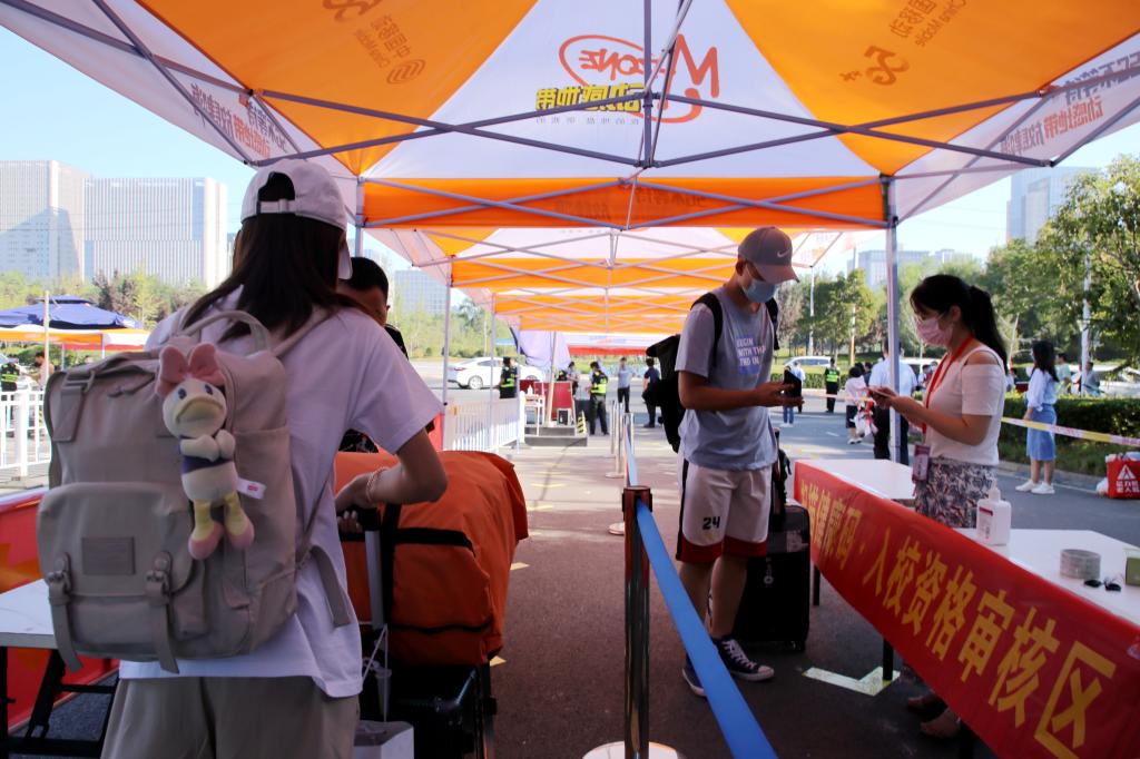 报到现场,同学们在工作人员指引下,严格按照学校疫情防控相关要求,认真佩戴口罩、间隔排队、自觉测温、配合查验,从专用通道有序入校。