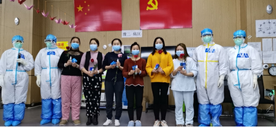 在第110个“三八国际妇女节”,医疗队向豫二病区所有女同胞送上了节日祝福,贾成军、王丽辉向获得“三好舱友”和“疫情防控知识竞赛”的获奖患者进行了颁奖。随后,医疗队与患者进行了游戏互动,并向豫二病区所有患者赠送了河南家乡礼品。患者动情地朗诵了感谢信,向河南医疗队对大家无微不至的照顾和专业精心的治疗致以敬意,并集体向医护人员鞠躬,表达感激之情。