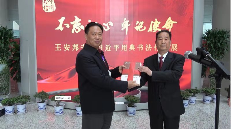 柴法军代表图书馆接受了王安邦捐赠的书法作品集,并向王安邦颁发捐赠证书。