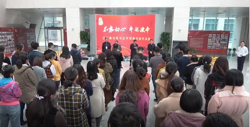 本网讯(文/李冕 李政远 图/张卫兵)2019年11月22日上午,我校王安邦教授“不忘初心、牢记使命”书写习近平用典书法作品展在郑州市图书馆顺利开展。郑州市图书馆党总支副书记柴法军、我校离退休职工工作处党委副书记程传欣、王安邦教授及相关负责人与图书馆工作人员近百人参加开幕式。