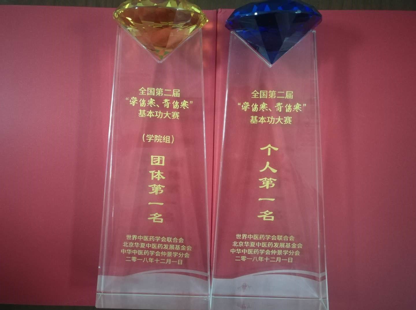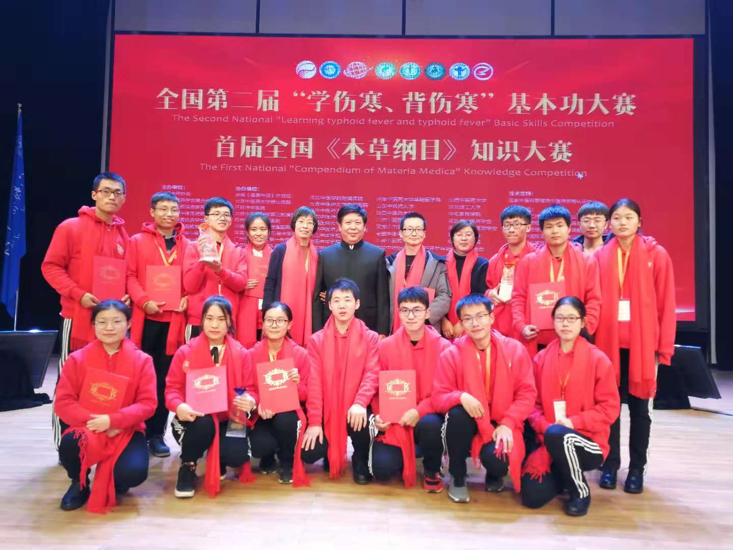 2018年11月30日-12月1日,全国第二届“学伤寒、背伤寒”基本功大赛在首都医科大学举行。经过激烈角逐,我校两支代表队分别荣获院校组团体赛一等奖和二等奖,2015级中医学(仲景学术传承班)王金娥同学获个人赛冠军,2016级中医学(仲景学术传承班)彭新月同学获个人赛三等奖。