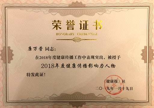 此次评选活动由国家卫生健康委指导,《健康报》社主办,通过网络投票与线下评审的方式,对全国卫生领域内积极提升公众健康素养、提高全民健康水平做出突出贡献的先进个人进行评选表彰,39位专家学者、宣传工作人员荣获“健康传播影响力人物”荣誉称号。