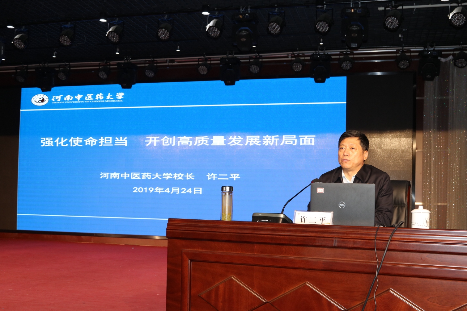 本网讯(文/徐明 图/王东方)为深入贯彻习近平新时代中国特色社会主义思想和党的十九大精神,落实党委主体责任,提高医院党员干部的思想政治素质和管理能力,2019年4月24日下午,校长许二平莅临二附院,为党员领导干部上党课。校长办公室负责人和二附院领导班子成员、科室主任、副主任和护士长等300余人聆听党课。
