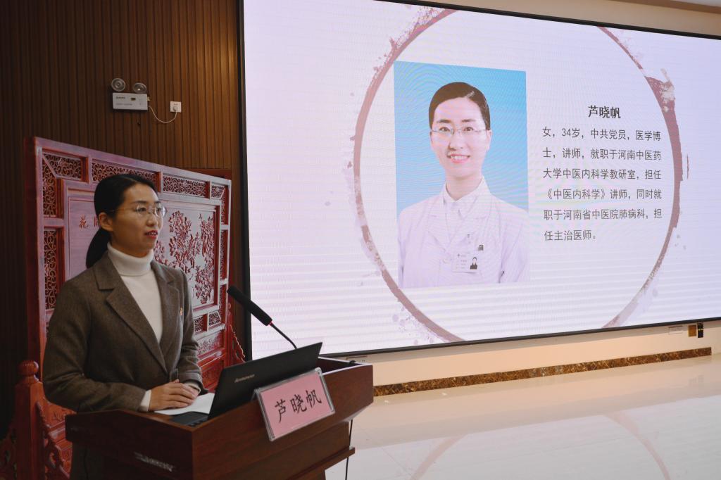 各位领导、老师、同学们:大家好!我叫芦晓帆,今年32岁,医学博士,在第二临床医学院内科学教研室工作,担任《中医内科学》讲师,同时还是二附院肺病科的一名主治医师。