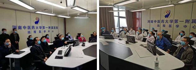 2月4日上午,一附院领导及专家组例行远程会诊查房,远程连线国家中医局防控专家组成员、北京中医院院长刘清泉教授,共同制定中医药防治方案。同日下午,河南省卫健委专家组邢丽华、刘小军、徐立然三位教授到我院远程医学中心,连线隔离病区远程会诊,就确诊患者的病情进行交流讨论并对治疗方案作出指导。