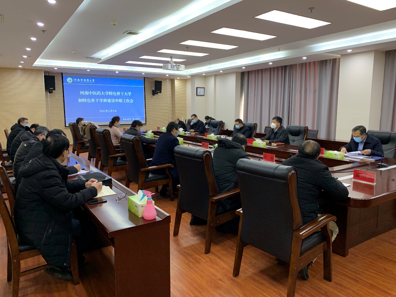 本网讯(文图/司建平)2020年2月9日上午,我校在教学实验综合楼BS605召开河南省特色骨干大学和特色骨干学科申报工作专题会。校领导别荣海、许二平、李建生、徐江雁、冯卫生及校长办公室、人事处、发展规划处、教务处、科学技术处、研究生院、学科建设办公室、药学院、一附院等部门和单位相关负责同志参加会议。会议由校党委副书记、校长许二平主持。