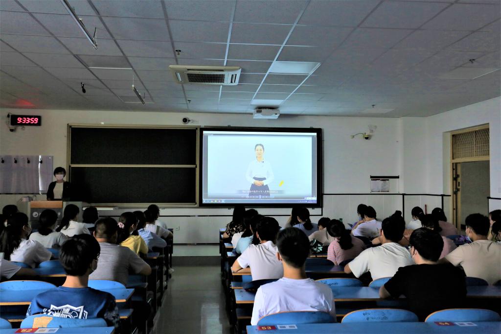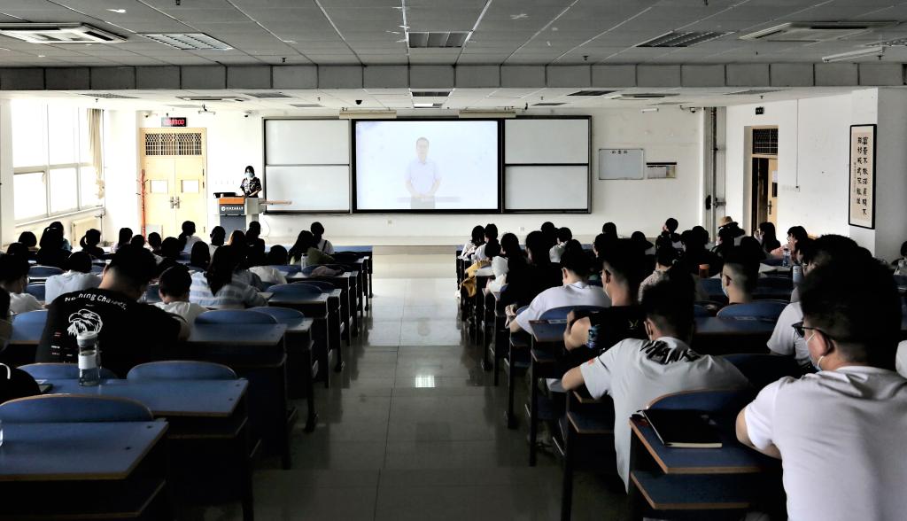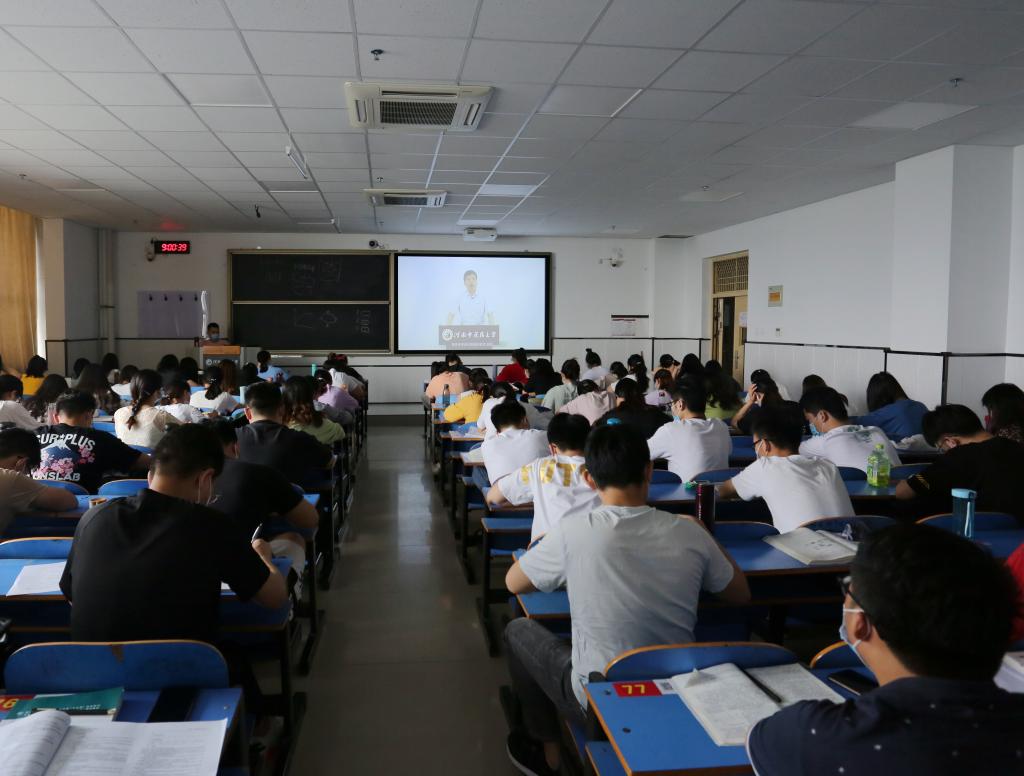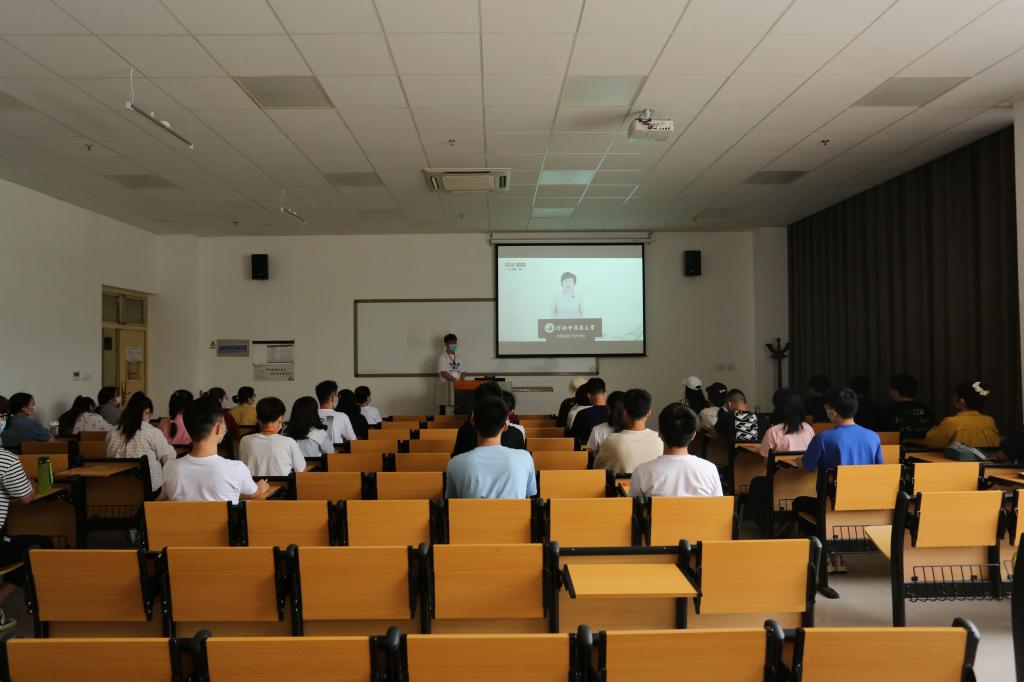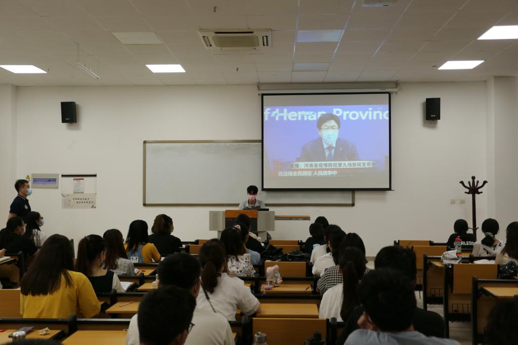 在集中观看视频环节,同学们先后观看了河南省教育厅党组书记、厅长郑邦山在河南省疫情防控第九场新闻发布会上对广大师生的寄语视频,校党委书记别荣海、校长许二平、校党委委员、副校长田力,教师和学生代表录制的视频。