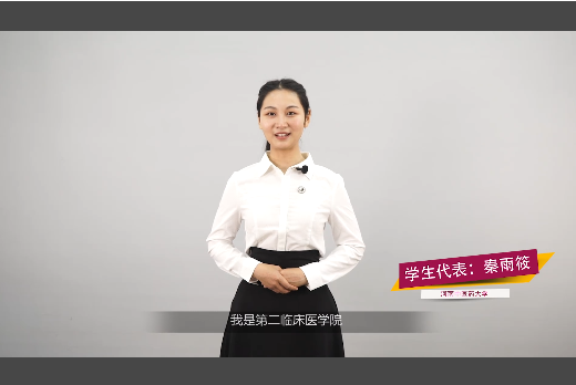 学生代表秦雨筱在发言中表示,上下同欲,则无往而不胜,当前学校疫情防控工作迎来了平稳有序的良好局面,这与所有老师的艰辛努力是密不可分的。作为新时代河中医学子,如今回到校园,一定会好好珍惜这一来之不易的大好局面,把灾难当教材,与祖国共成长,坚定文化自信,努力学习专业知识,传承中医药文化,常存爱国之情,报国之志,让青春在党和人民最需要的地方绽放绚丽之花!