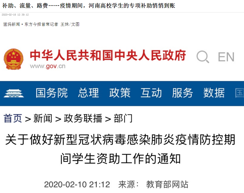补助、流量、路费……疫情期间,河南高校学生的专项补助悄悄到账