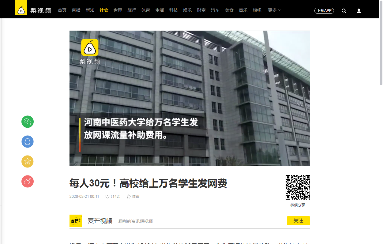 编者按:2020年2月18日-21日,猛犸新闻、梨视频对我校为上万名学生发放网课流量补助费用进行报道。现将猛犸新闻部分文章刊发如下: