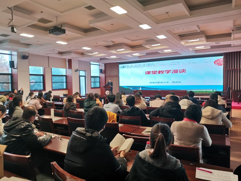 在两天的集中培训中,马克思主义学院、人事处、教学评价与教师发展中心、教务处、图书馆、科技处、学科办等部门负责人先后结合本部门的工作和办事流程,为新教师进行了专题讲座。学校首届仲景教学名师、管理学院贾成祥教授以《课堂教学漫谈》为题,结合自己的成长历程和教学经验,和新教师面对面进行了交流,2019年校教学竞赛一等奖获奖教师药学院白莉老师和基础医学院王瑾瑾老师为全体新进教师进行了示范教学。此次培训中,学校还安排了实践教学,组织新教师参观了校史馆、医史馆和中医药博物馆等。本次培训班安排半个月时间,集中培训结束后,新教师将自主学习教育学课程和线上课程,各院部还将结合本单位实际开展院部层面的培训。