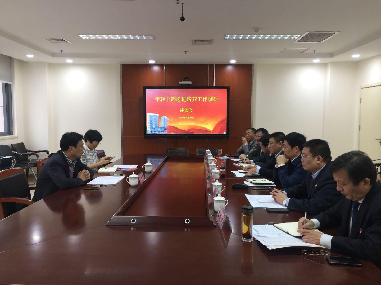 本网讯(文图/焦钧)为深入贯彻落实省委《关于适应新时代要求大力发现培养选拔优秀年轻干部的实施意见》精神,2019年3月20日上午,河南省委组织部青干处处长尹勇男等领导莅临一附院调研年轻干部培养工作,并组织部分公立医院负责人召开座谈会。校党委委员、组织部部长孟宪峰应邀参会。河南省肿瘤医院党委书记、院长张建功,郑州大学第一附属医院党委副书记赵杰,河南省人民医院副院长陈传亮,郑州人民医院院长郝义彬及一附院党委书记翟剑波,党委副书记、院长朱明军等参加了座谈。
