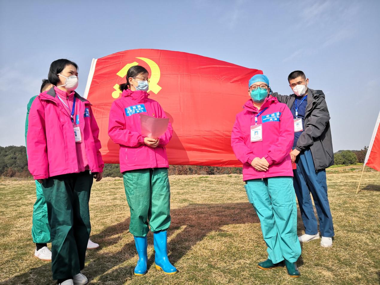 休舱后,大家在江夏方舱医院所在的大花山拍照留念,还兴奋的唱起了家乡豫剧“谁说女子不如男”,医疗队第一、第二临时党支部火线发展的宋国玲等5名中共预备党员面对鲜艳的五星红旗庄严宣誓,“我志愿加入中国共产党 ……为共产主义奋斗终身,随时准备为党和人民牺牲一切,永不叛党”......所有队员用自己的实际行动为党和人民交上了一份圆满答卷。