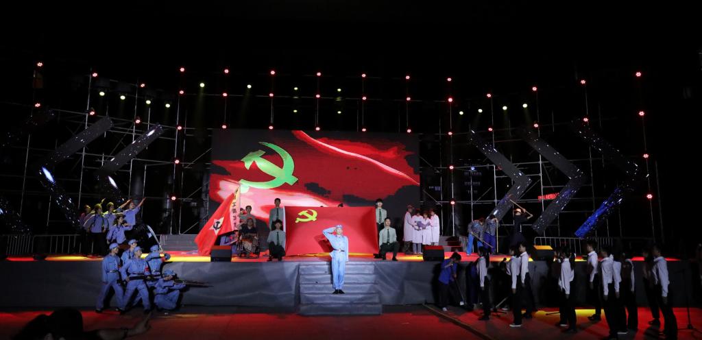 晚会在组合展示《没有共产党就没有新中国》中拉开序幕,“星星之火”“峥嵘岁月”“还看今朝”三个篇章依次展开,饱含深情的表演引发现场观众齐声合唱,表达了对中国共产党的衷心拥护和跟党走的坚定信念。有表现无数共产党人用生命传递一封鸡毛信的感人故事;还有跟随老党员的回忆追寻红军革命道路,讲述中国共产党带领人民克服危难、不断发展壮大的历程,突出展现了中国共产党顽强的生命力和蓬勃的发展力舞蹈情景剧《无尽“红”流》;更有深情向革命先烈告白,倾听这生命汇成的朗诵《盛世之响》;以及展现当代青年学子风采的《春暖花开》和唱出国泰民安,我们心中骄傲的《灯火里的中国》。