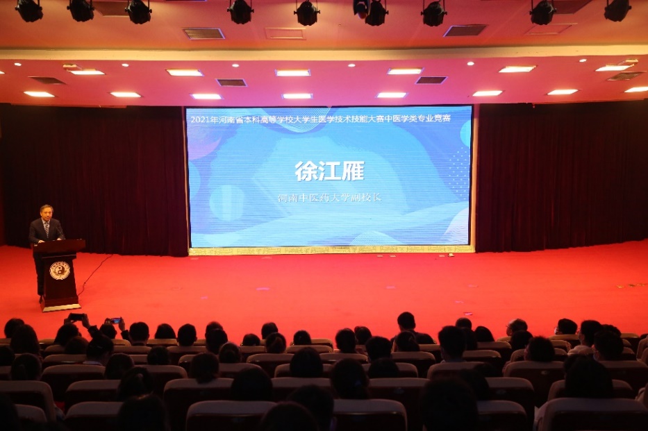 许二平在致辞中指出,本次大赛通过对学生专业理论以及实践动手能力的展示,为我省本科中医院校提高育人水平搭建了开放式交流的平台,对中医药高等教育教学质量的提高具有积极的促进意义,对我省中医药学专业人才培养模式改革创新起到了很好的推动作用。希望各位参赛的同学充分利用好这次展示自我、相互学习、取长补短、共同提高的难得机会,在竞赛中不断成长,不断突破,取得佳绩!