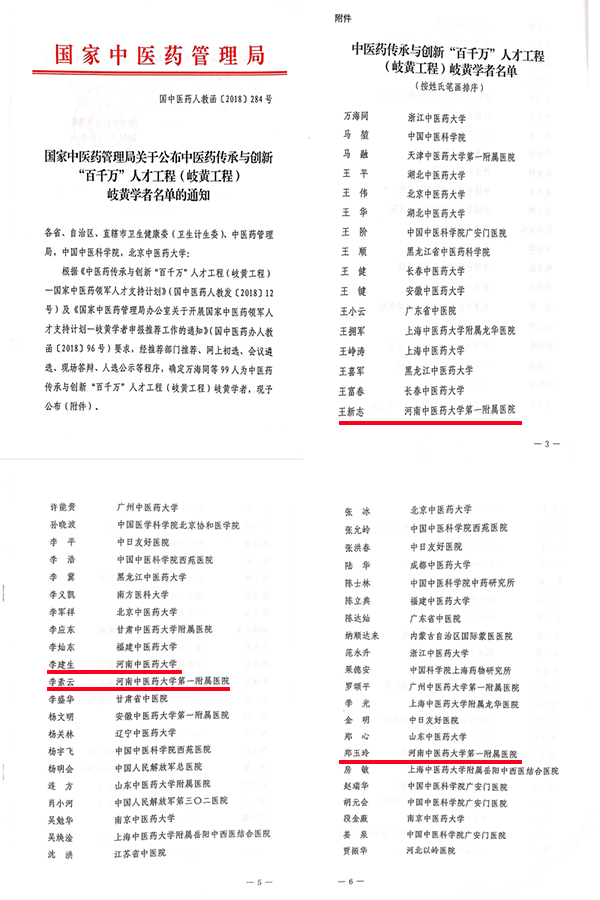 本网讯(文图/何世桢)2019年1月4日,从国家中医药管理局和河南省中医管理局传来好消息,我校李建生教授及一附院郑玉玲、李素云、王新志三位教授被确定为中医药传承与创新“百千万”人才工程(岐黄工程)岐黄学者。