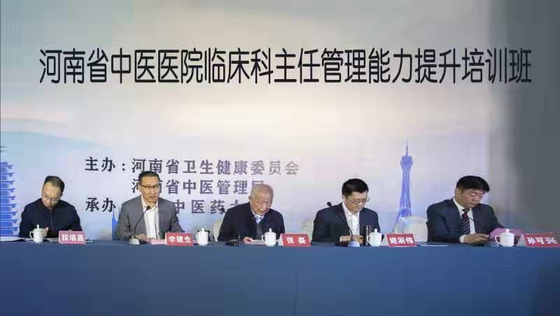 本网讯(文图/丁丁)2019年10月10日上午,由河南省卫生健康委、河南省中医管理局主办,我校承办的“河南省中医医院科主任管理能力提升培训班”在顺利举办。河南省卫生健康委中医处处长姬淅伟、副处长段瑞昌,国医大师、“全国中医药杰出贡献奖”获得者张磊教授,校党委委员、副校长李建生等领导专家参加会议。开幕式由校发展规划处处长孙可兴主持。