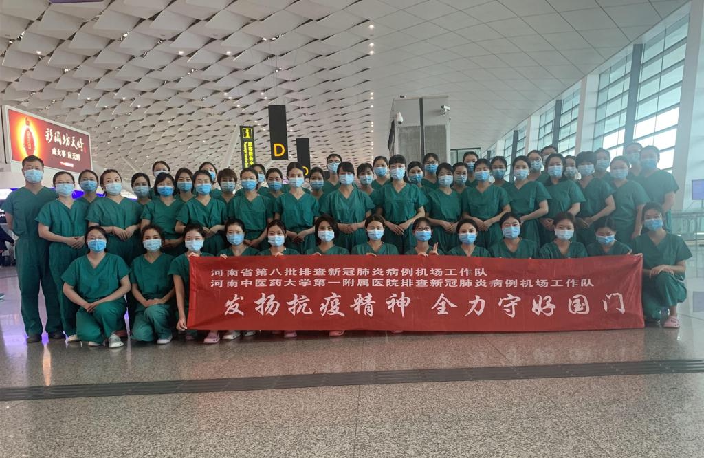 本网讯(文/张丽 图/陈茜 龙洋 陈天珊)当前,新冠肺炎疫情在全球持续蔓延,我国外防病例输入的压力持续加大,筑牢入境防疫关口成为决战新冠肺炎疫情的重中之重。我校一附院按照省新冠肺炎疫情防控指挥部、省卫生健康委的指示,成立了河南省第八批排查新冠肺炎病例机场工作队、一附院第三批机场工作队,于2020年10月17日进驻新郑国际机场,开展疫情防控工作一线,日前,工作队全体队员不辱使命,圆满完成各项任务,全体队员零感染。