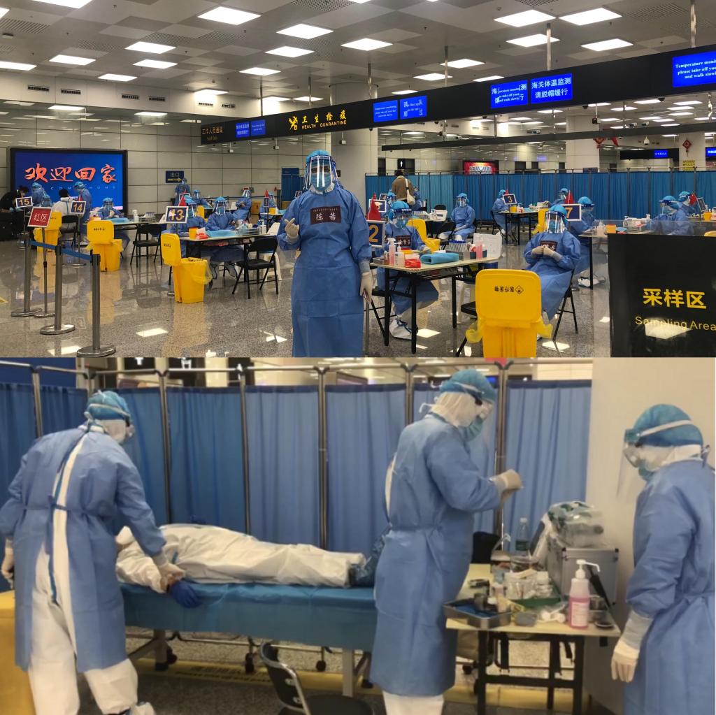 此次工作队由一附院党委委员、党委办公室主任焦钧任队长、门诊部副主任于江琪为联络员,来自护理、感控等专业技术骨干和精英52人组成。从2020年10月17日进驻机场,至任务结束,共接10个国家36趟航班,进行核酸检测采样6876人次,成为机场工作队成立以来接机人数最多的工作队。