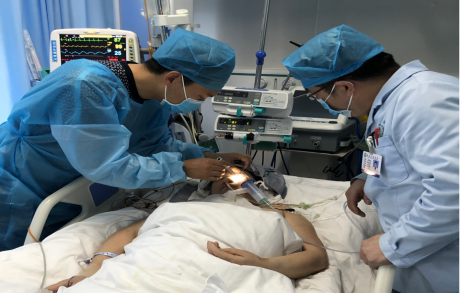 派驻专家冯博和重症医学科主任熊高钊为患者仔细检查