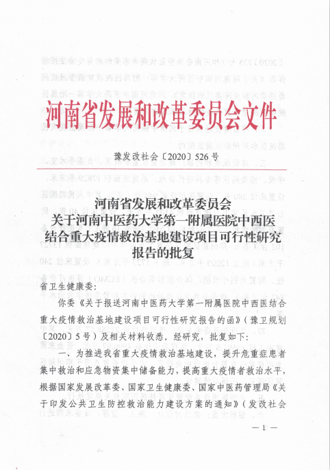 本网讯(文/焦钧)近日,我校一附院中西医结合重大疫情救治基地建设项目正式获得河南省发展和改革委员会的批复,标志着一附院公共卫生应急救治能力再获新的提升。