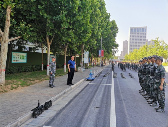 本网讯(文图/洪浦航)2021年6月6日上午,我校党委副书记、工会主席张小平带领相关部门负责人,对代表河南高校参加2021年全国大学生军事课技能比赛的我校全体队员以及仪仗队、教官队队员进行了亲切慰问。