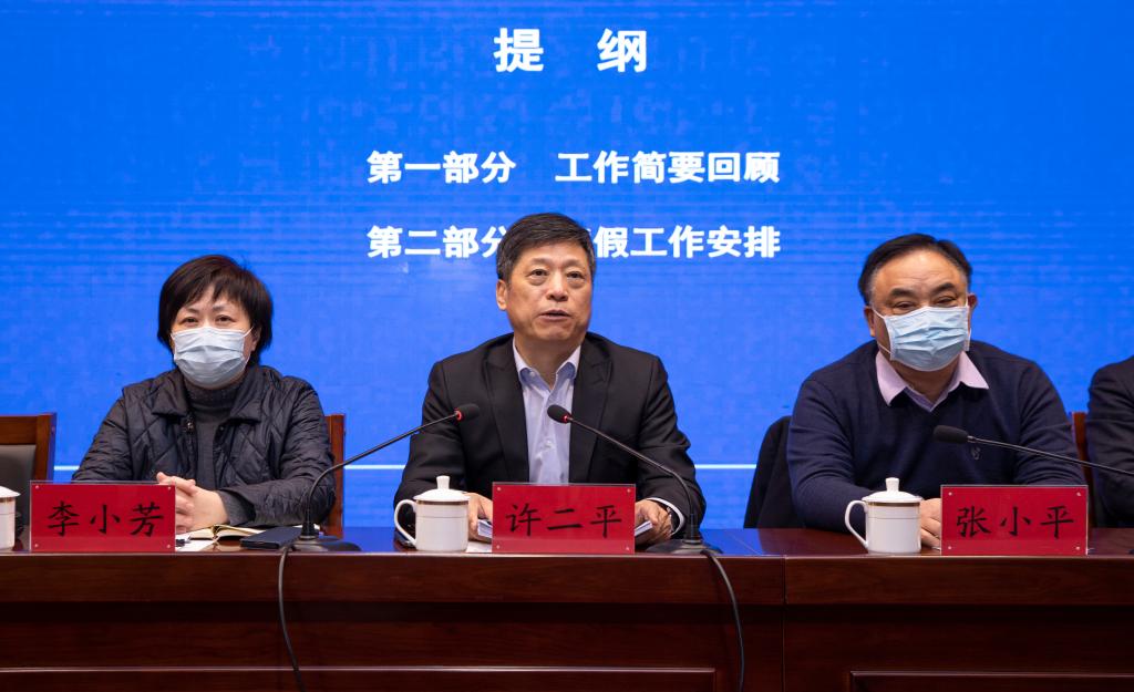 校长许二平对学校2021年度各项工作进行了简要总结回顾,对寒假期间重点工作进行了安排部署,提出了明确要求。许二平指出,2021年,学校坚持以习近平新时代中国特色社会主义思想为指引,认真贯彻落实习近平总书记重要指示精神,按照中央、省委各项决策部署,团结带领全校师生在做好抗洪防疫的同时,把党史学习教育与攻坚克难、干事创业结合起来,有力推动了学校各项事业高质量发展。