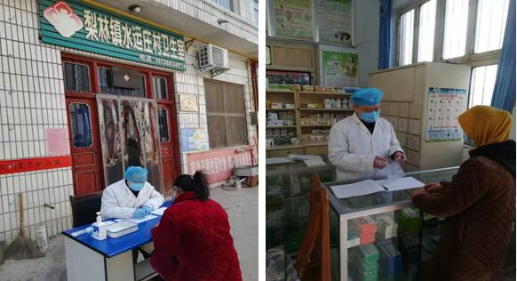 2018级针灸推拿学院专升本三班宋琦,在山西省长治市苏店镇义堂村协同工作人员为过往人员测量体温及信息登记。