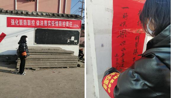 2019级针灸推拿学本科一班冯军茹,积极主动在老家做疫情宣传工作,负责村里的走访调查、信息登记工作。