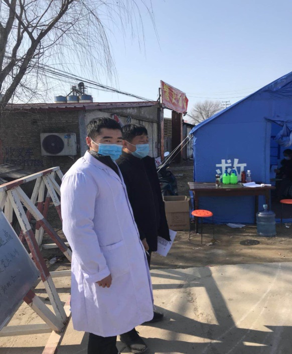 2018级针灸推拿学院专升本四班李锦龙,主动参与河南省开封市祁县的葛岗镇防疫工作,负责出入人员体温测量、信息登记。