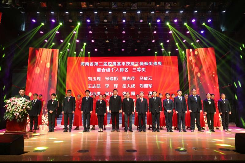 本网讯(文/郭喜钦 图/刘晓利)2020年11月6日,在省卫生健康委、省总工会等主办的河南省第二届腔镜基本技能竞赛中,我校二附院普外科岳大成、妇科刘晓利喜获个人三等奖,并被授予河南省卫生技术标兵称号。省卫生健康委主任阚全程、省卫生健康委副主任谢李广、省总工会副主席杨会卿、省总工会二级巡视员乔建民等领导为获奖选手颁奖。