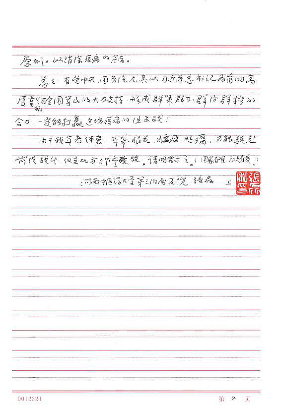悠悠为民情,拳拳爱国心。张磊老师提出,新冠肺炎发病急、传染快、死亡率高,要以“中西医结合”治疗为好,不要各呈其强,延误病情。体现了张老师仁心仁术、实事求是的严谨医风。