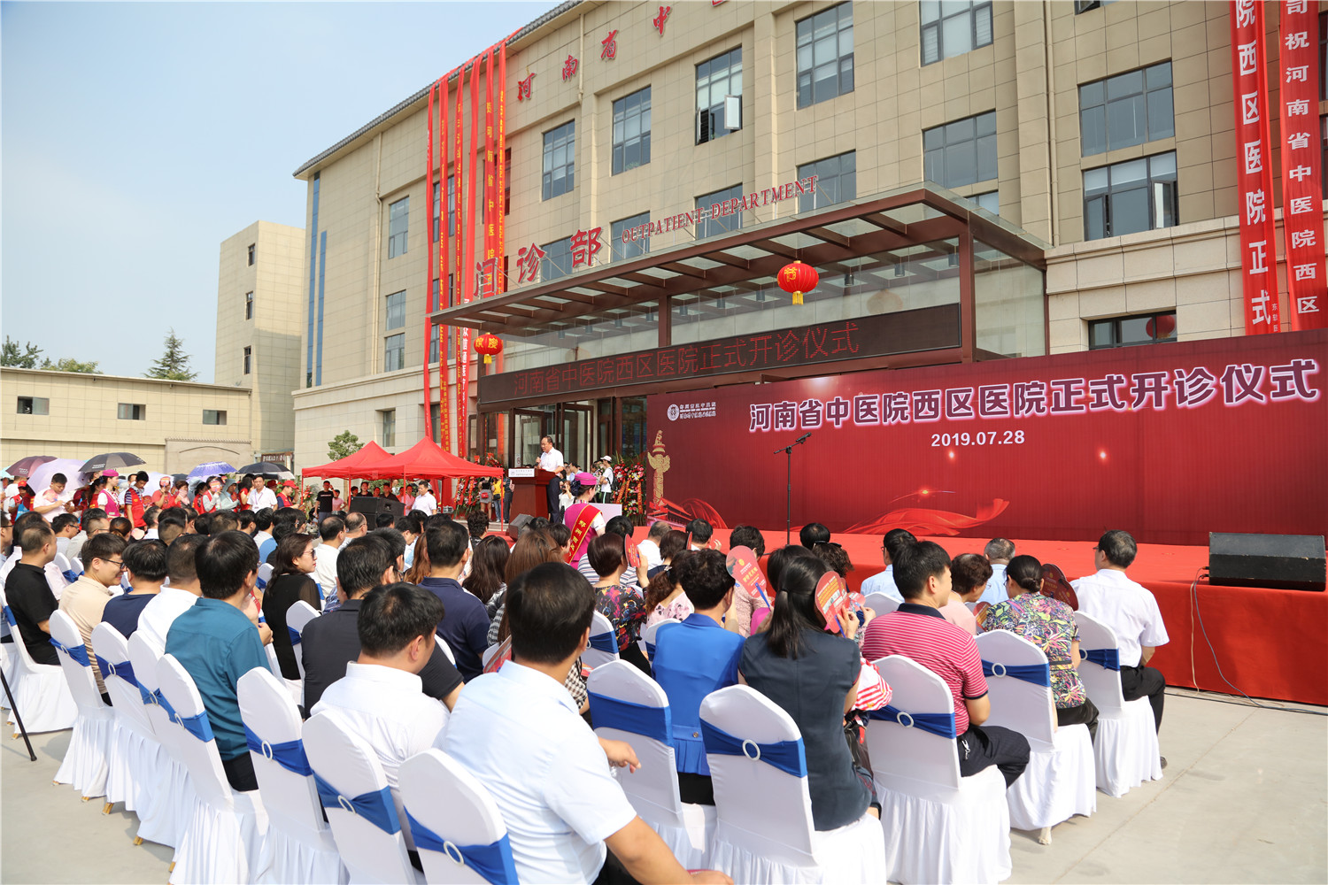 崔应麟在开诊仪式上的致辞中表示,西区医院是二附院加快发展进程中的又一精品工程,将依托二附院先进的管理模式、雄厚的技术力量和优秀的人力资源,逐渐成为具有公益性质的中医药特色医疗机构,他希望西区医院全体医护人员以开诊为契机,精诚团结,勇于创新,坚持为群众服务,把西区医院办成管理一流、环境一流、服务一流的卫生医疗服务机构,为加快中原经济区建设和构建和谐社会作出新的更大的贡献。随后,王海亮宣布西区医院正式开诊,并同与会领导共同启动开诊水晶球。