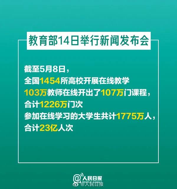 据介绍,疫情期间,高校在线教学实践全区域、全覆盖、全方位,实现了“停课不停教、停课不停学”。截至5月8日,全国1454所高校开展在线教学,103万教师在线开出了107万门课程,合计1226万门次。参加在线学习的大学生共计1775万人,合计23亿人次。